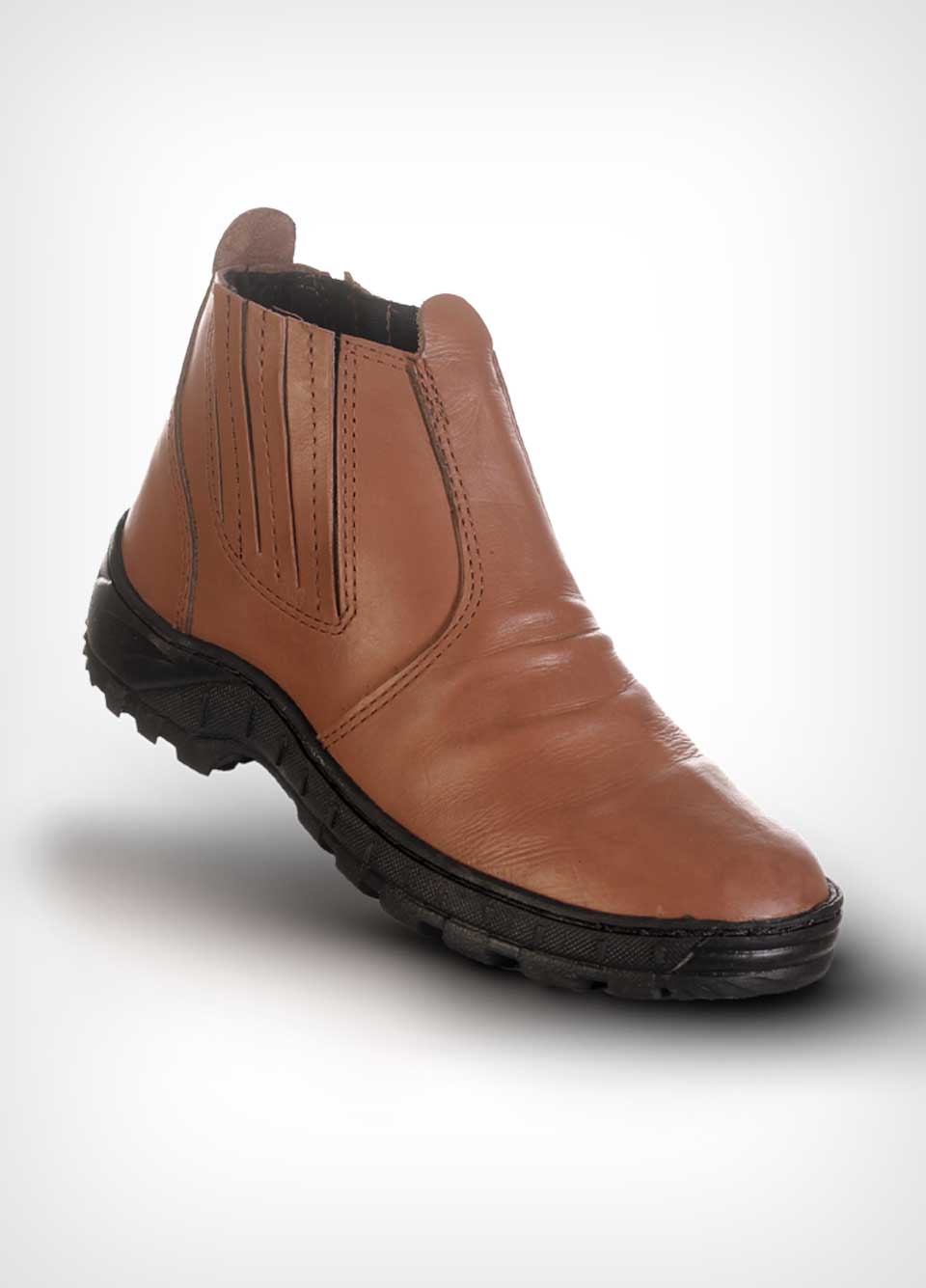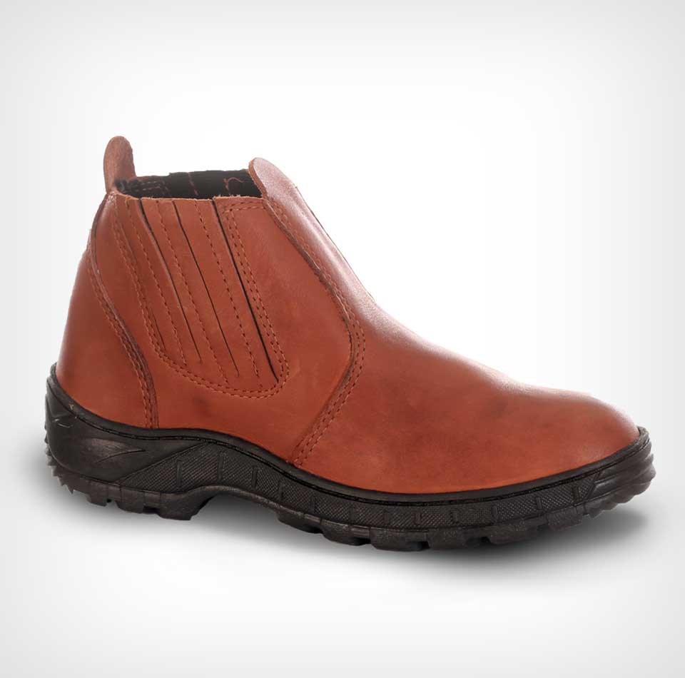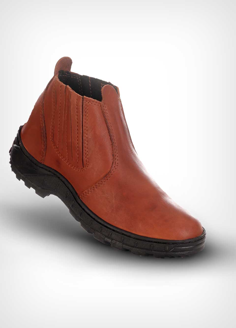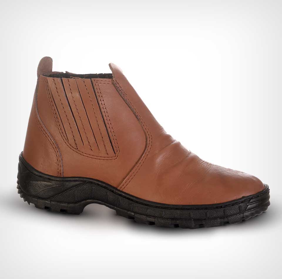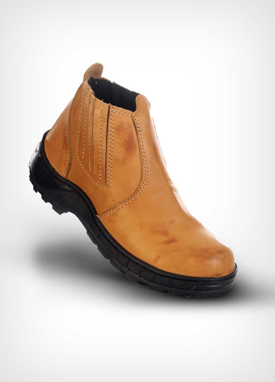Bota de Segurança Botina Agro com Elástico, ocupacional de uso profissional, confeccionado em couro com curtimento atravessado, 1.8/2.0mm linhas de espessuras, fechamento em elástico gáspea inteira, palmilha de montagem em não tecido fixada pelo sistema Strobel, forração em tecido não transpirável, solado colado e costurado (blaqueado), resistente a objetos cortantes, perfurantes e abrasão.