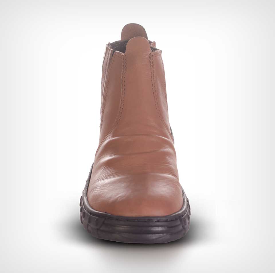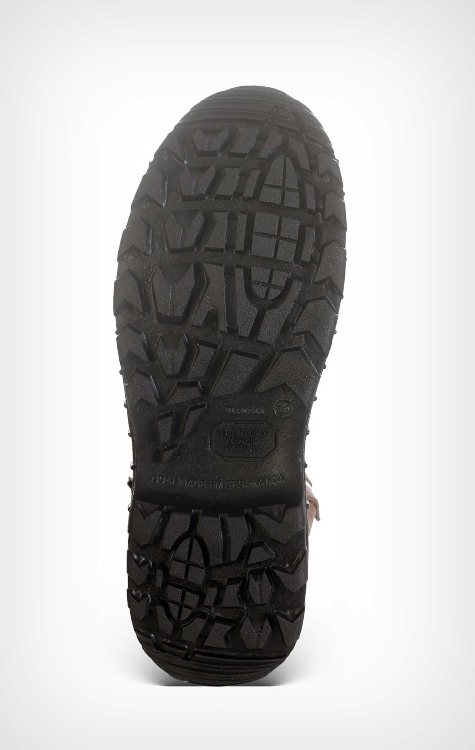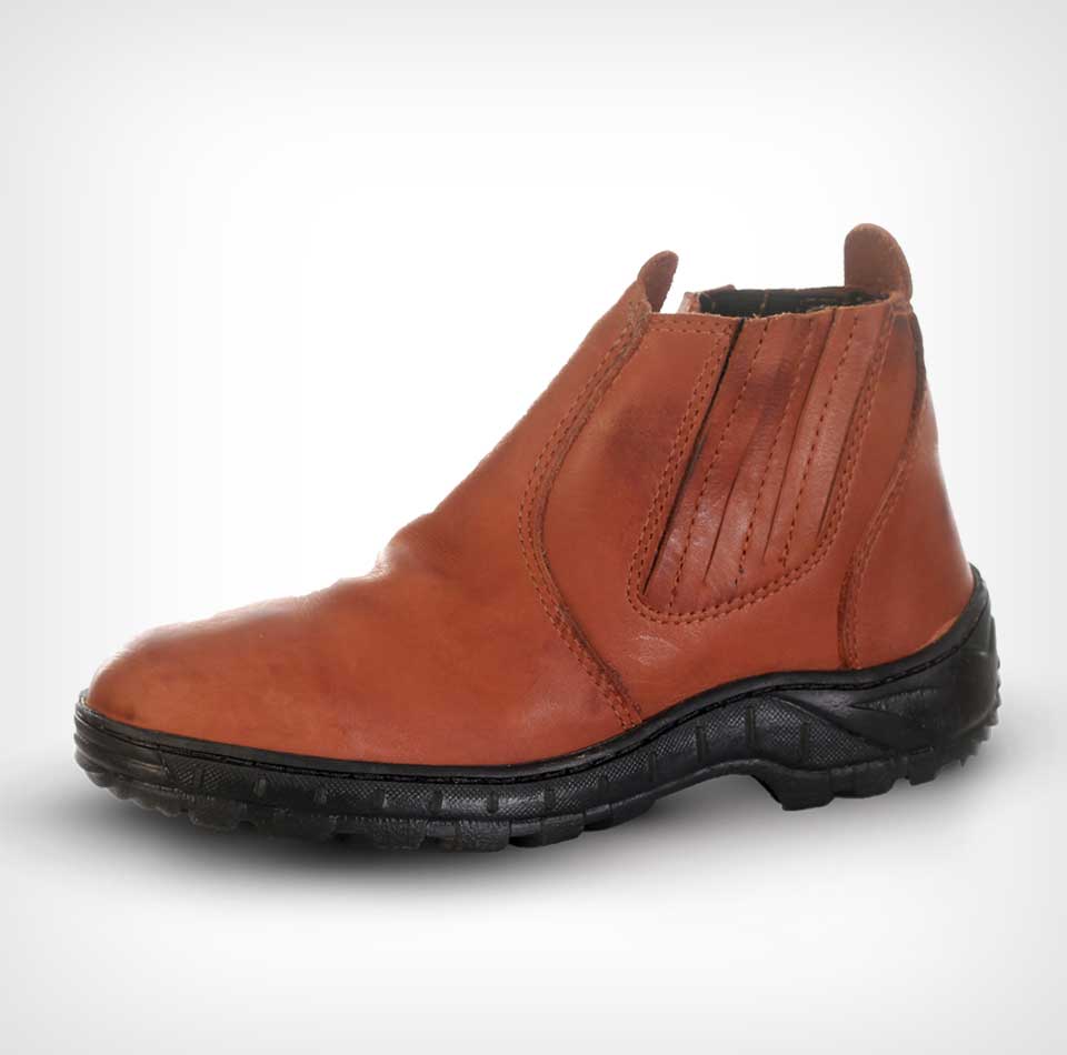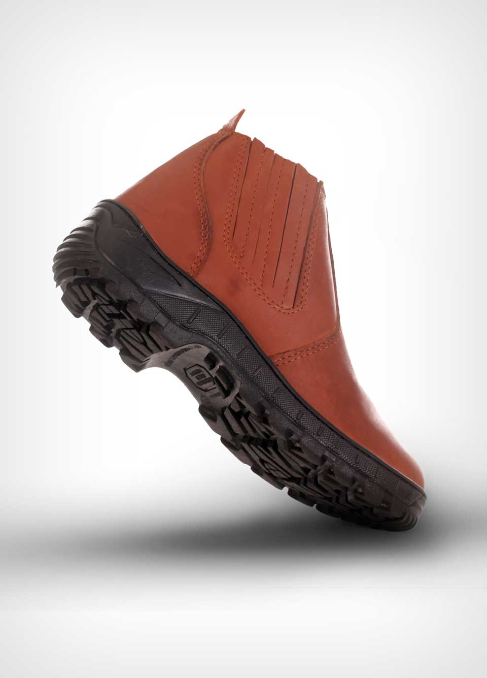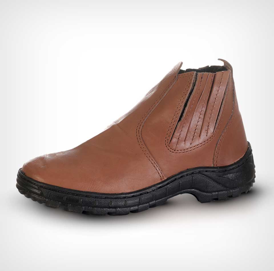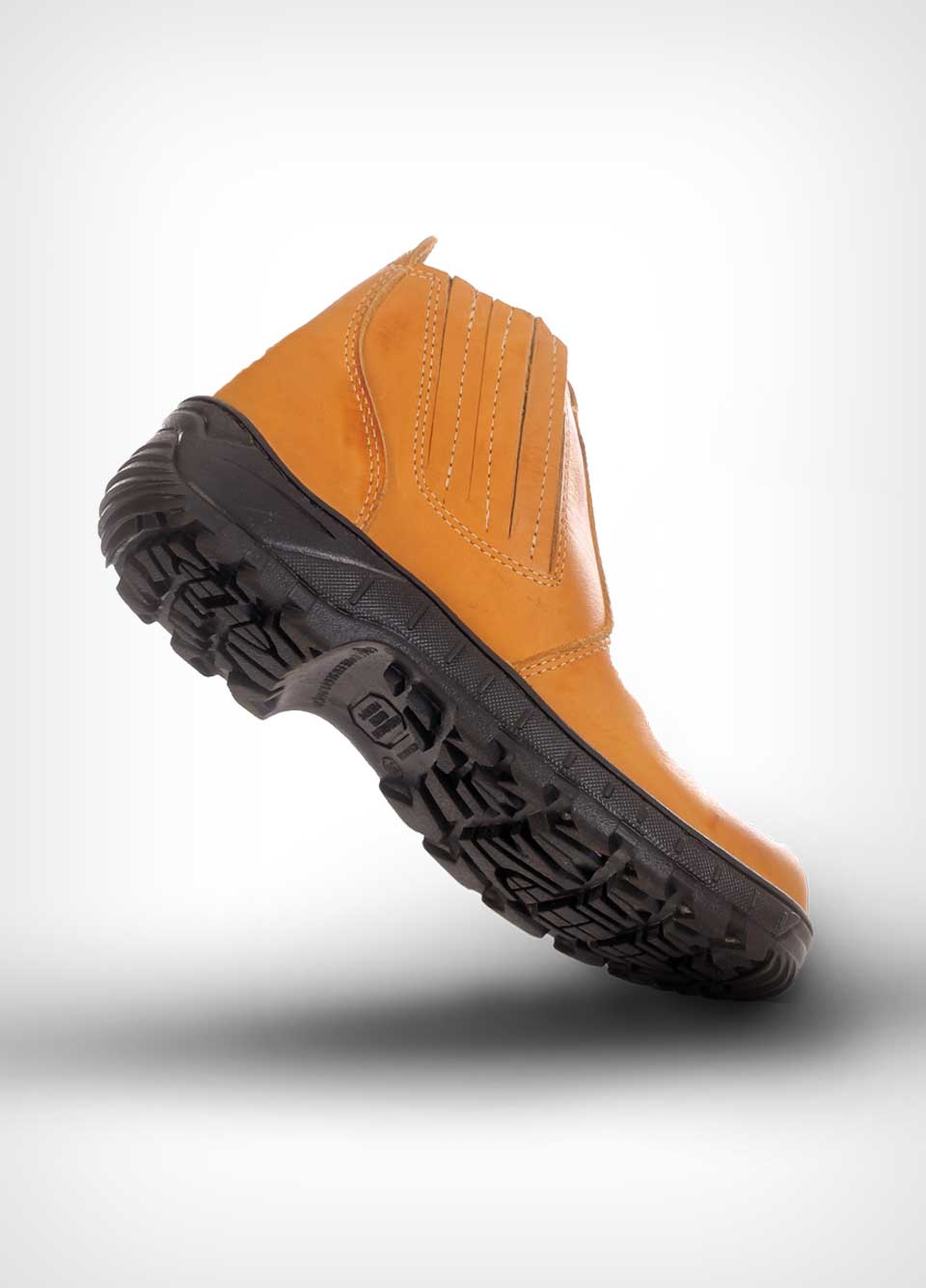 Bota de Segurança Botina Agro com Elástico, ocupacional de uso profissional, confeccionado em couro com curtimento atravessado, 1.8/2.0mm linhas de espessuras, fechamento em elástico gáspea inteira, palmilha de montagem em não tecido fixada pelo sistema Strobel, forração em tecido não transpirável, solado colado e costurado (blaqueado), resistente a objetos cortantes, perfurantes e abrasão.