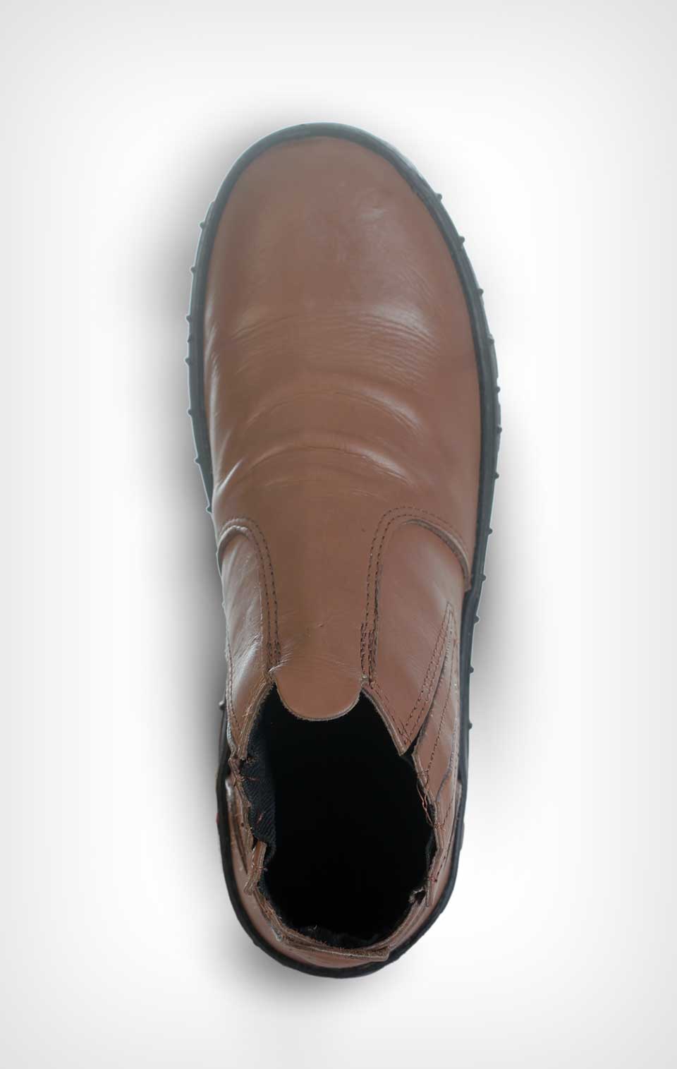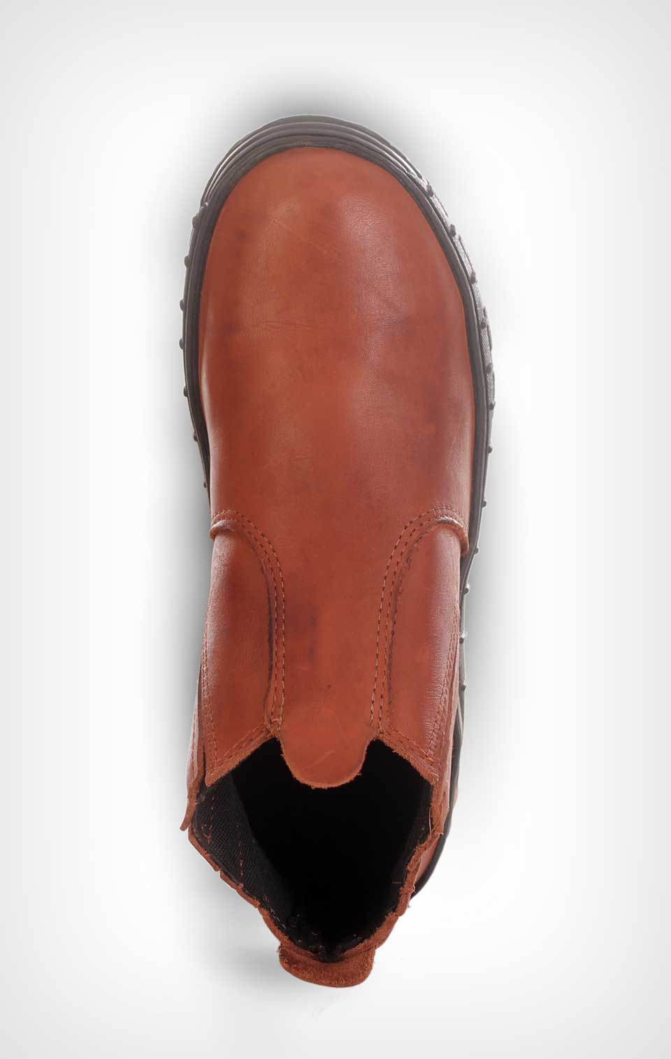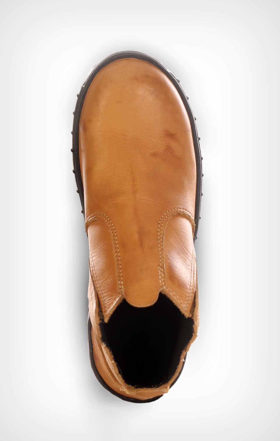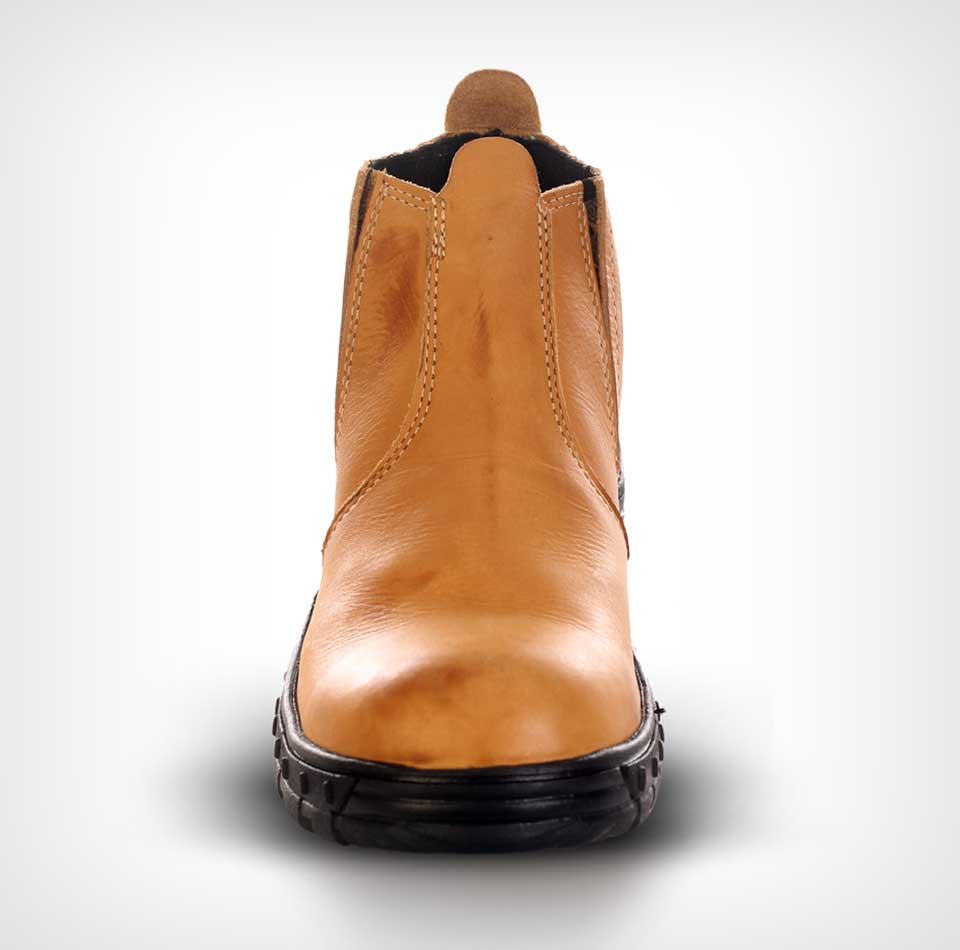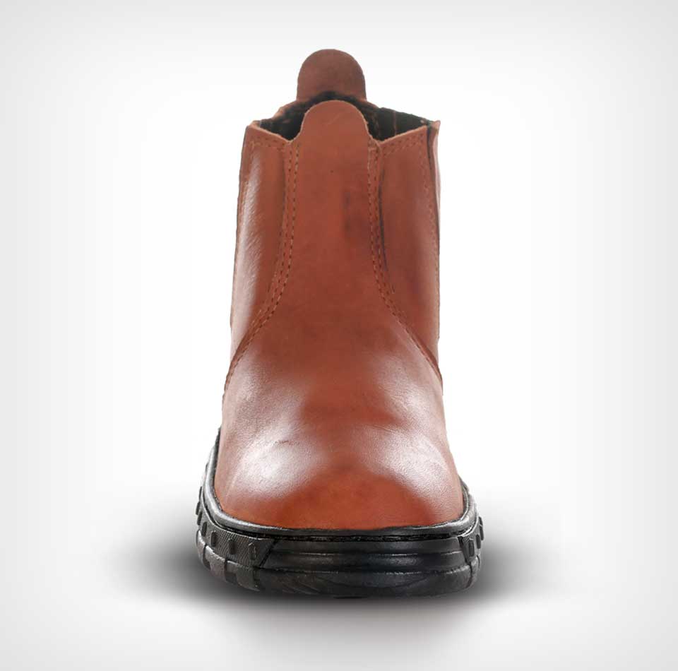 Bota de Segurança Botina Agro com Elástico, ocupacional de uso profissional, confeccionado em couro com curtimento atravessado, 1.8/2.0mm linhas de espessuras, fechamento em elástico gáspea inteira, palmilha de montagem em não tecido fixada pelo sistema Strobel, forração em tecido não transpirável, solado colado e costurado (blaqueado), resistente a objetos cortantes, perfurantes e abrasão.